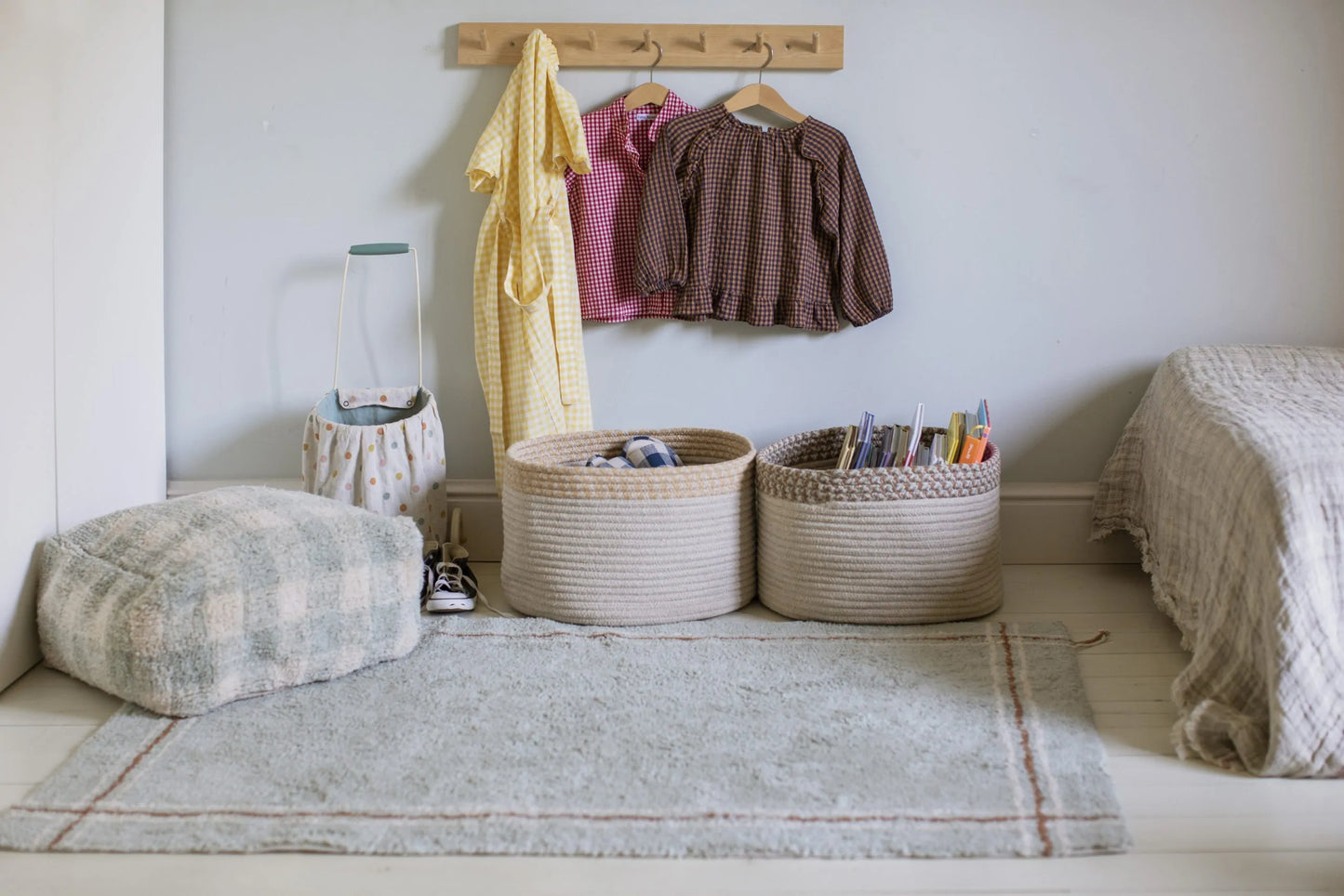 À table! This plush Vichy tablecloth-inspired pouf is a call for supper! Little ones can enjoy imaginative play in comfort sitting on one of these around their little dining tables. The perfect pairing for our Kitchen Tiles rugs in matching colorways and for many other pieces in our catalog. Spread the vintage kitchen vibe around the home!
