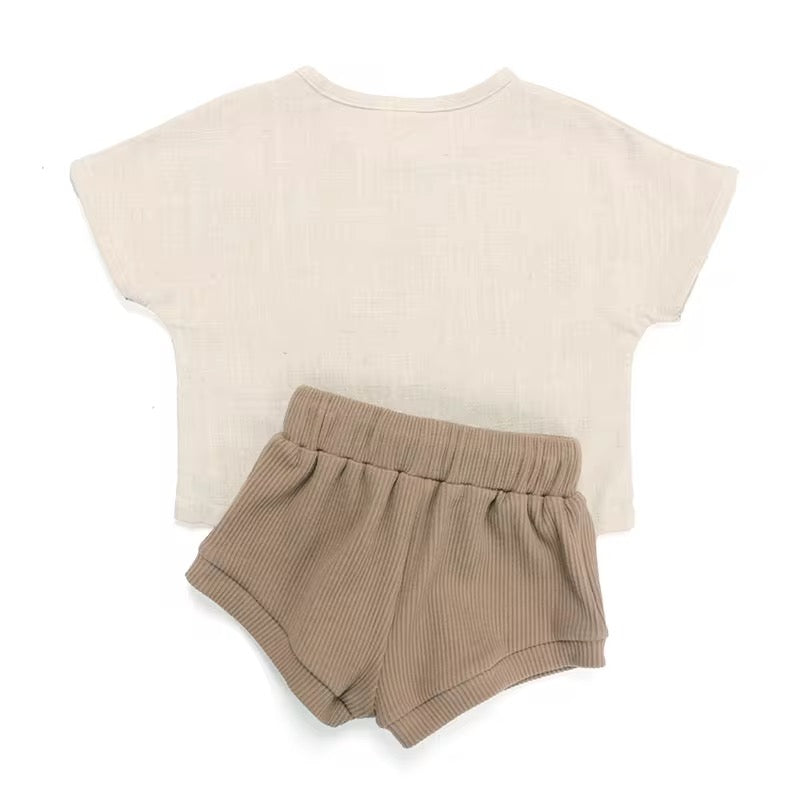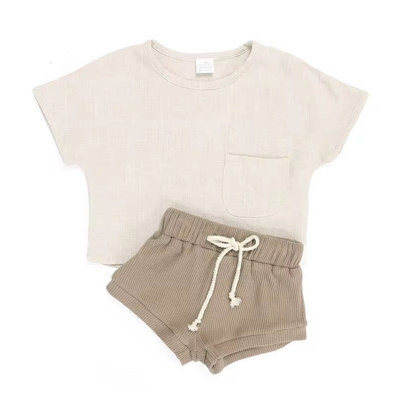 The Beautiful 2 piece set is made from Soft cotton linen and cotton ribbed pants .