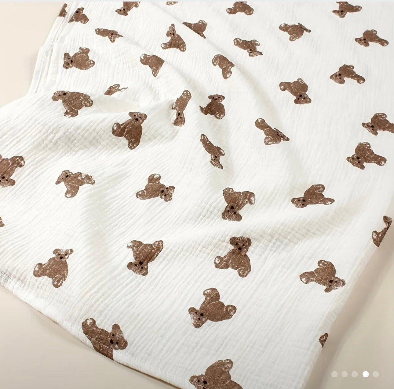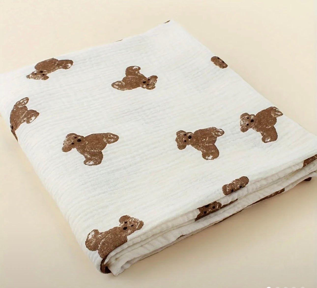 Wrap your little one in comfort and cuteness with our Teddy Bear Muslin Swaddle Blanket. Made from soft, breathable cotton muslin, this lightweight blanket is perfect for swaddling, cuddling, nursing, stroller rides, or even as a cozy playmat.