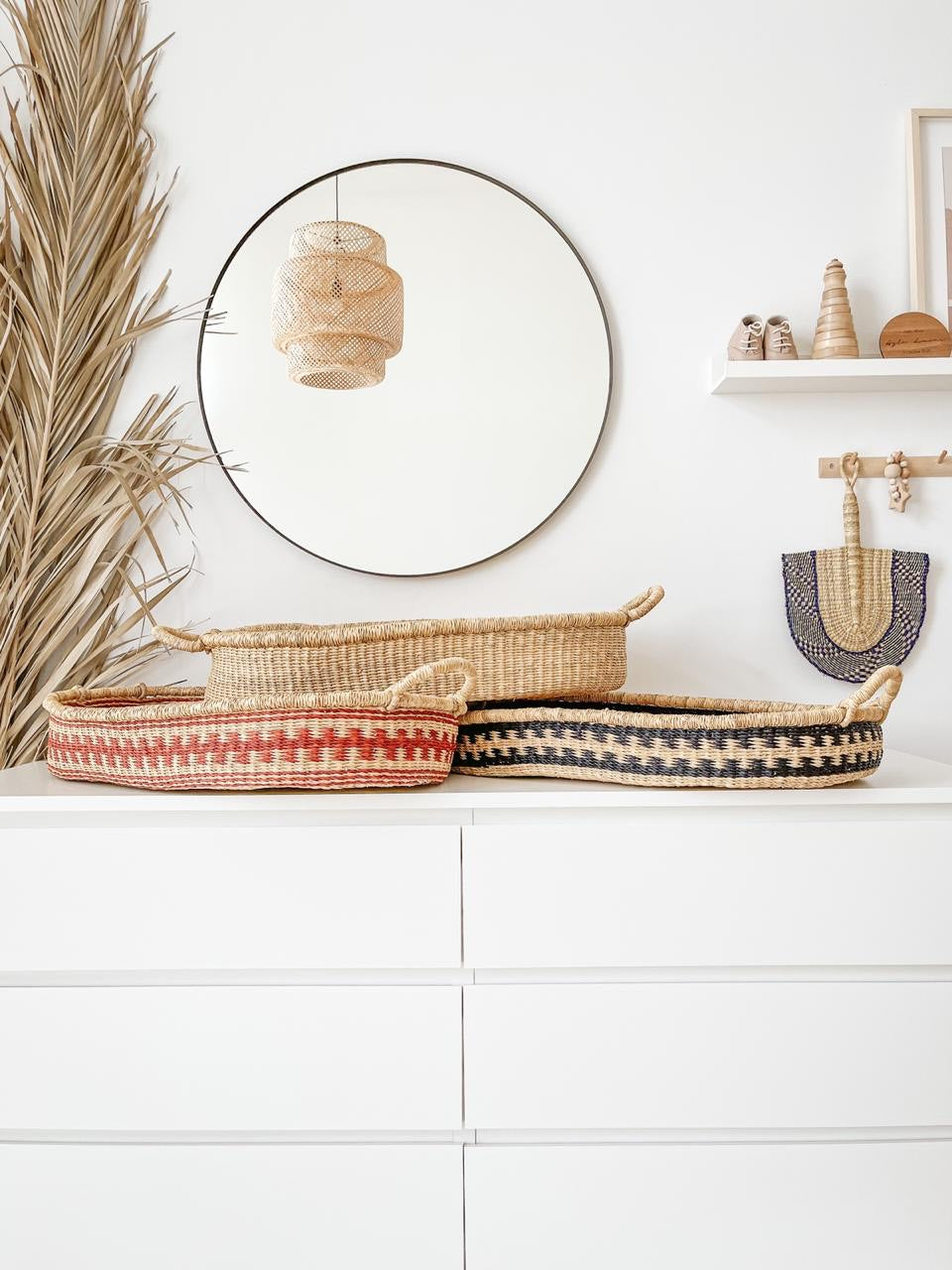 Maxims Changing baskets are handmade in farming villages in the Bolgatanga region of northern Ghana, and are perhaps the best known of all African baskets. They are woven from local