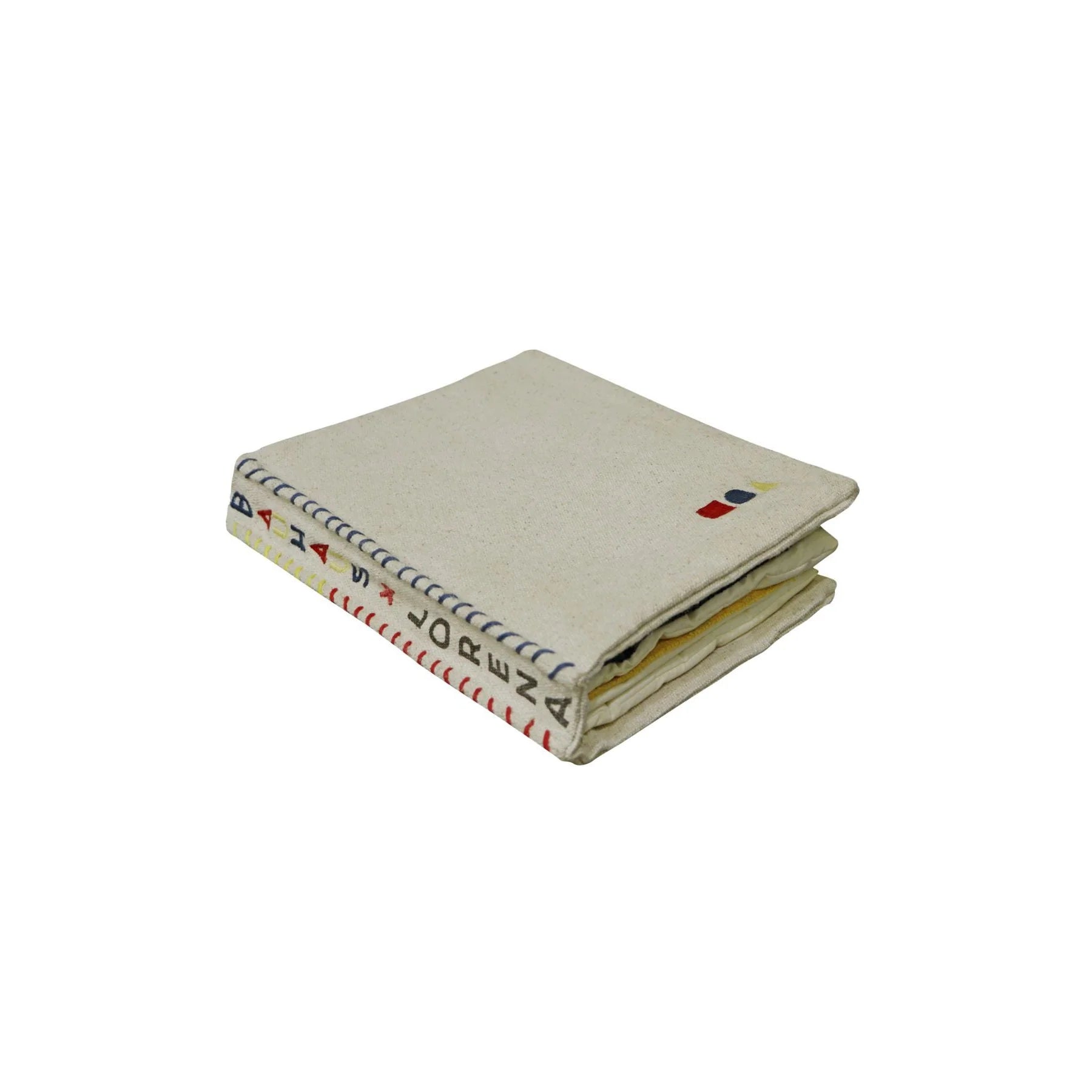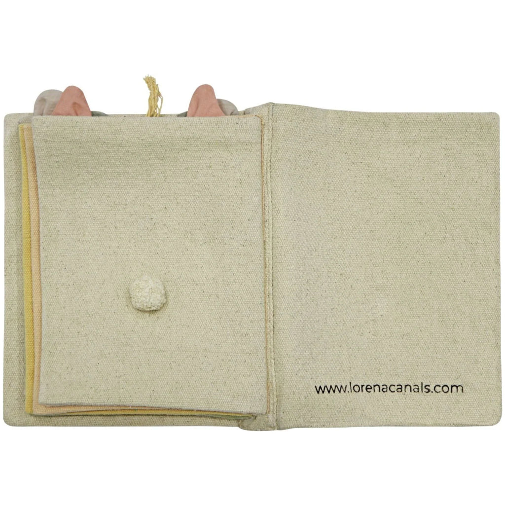 A charming textile book with Fred the Frog and his friends. This interactive book invites children to explore textures, colors, and shapes while learning about their favorite animals. This sensorial book features our popular Animal Crew with fun details in 3D. It is made by upcycling textile scraps from our own factory making it a sustainable choice for your kids decor. Let your child discover who is hiding under the long ears!