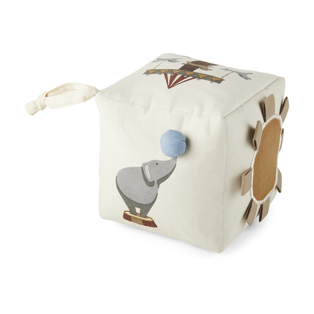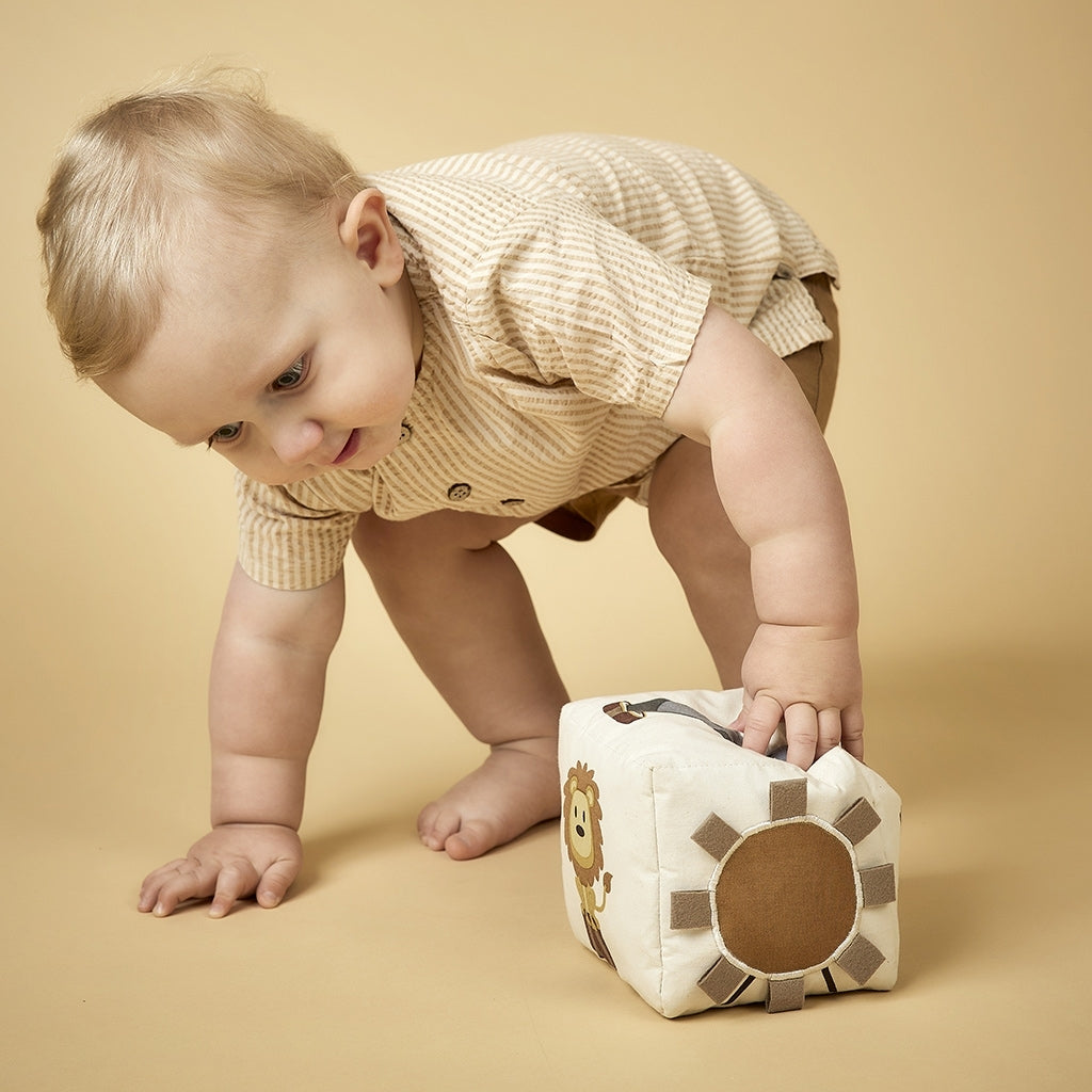 Stimulate your baby's senses with our sweet fabric cube in organic cotton. The cube is good for stimulation and play, as it is exciting for the baby to explore and touch all the fun details on the dice. In addition, it has crackling paper inside that makes a crisp sound when touched.
