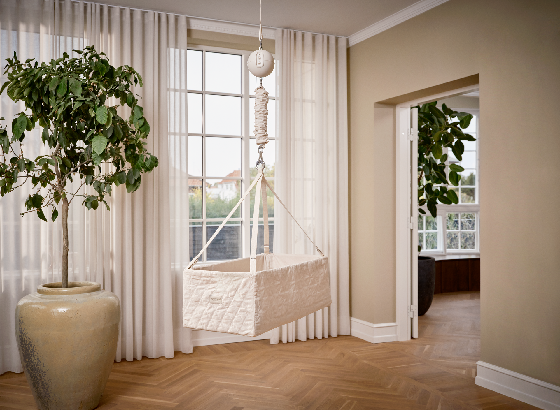 With a Classic Bundle you get a spacious and GOTS-certified cradle with a flat base, the gentle swaying movements from the Motor and a practical and stylish Tripod Stand 2.0.