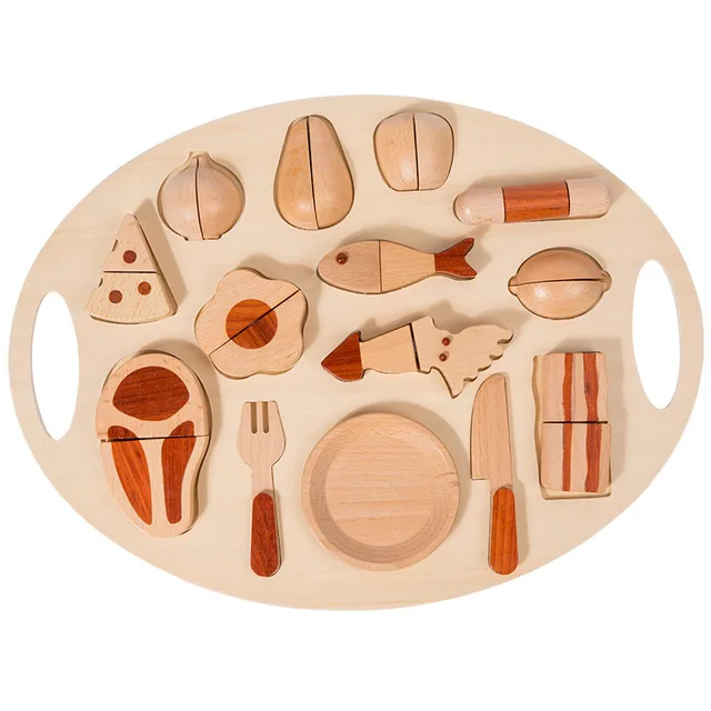 Natural Wooden Kitchen Pretend Toy-Dinner Set